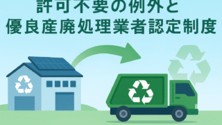 産廃の許可不要ケースを解説。自ら処理・専ら再生利用の判断、再生利用認定・広域認定のポイント、優良産廃処理業者の基準や手続の概要を整理します。